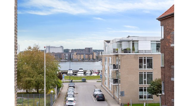 Når I træder ud på altanen, bliver I mødt af fjorden på den ene side. Fjorden ligger tilmed kun få meter væk fra lejligheden. Den beroligende brise og udsigten til det glitrende vand vil utvivlsomt blive en fast del af jeres daglige rutine.