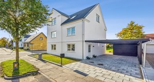 Til gengæld kan denne villa prale af en større grund på 947 m² og en lavere pris på 3.598.000 DKK. Den månedlige ejerudgift her er 2.505 DKK.