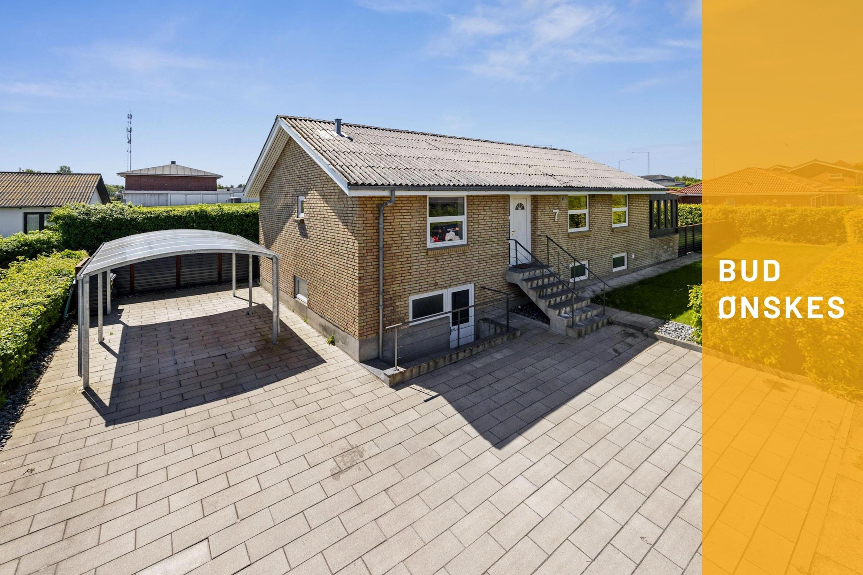 Udendørs får du en dejlig, solrig have med grønne omgivelser og plads til at indrette hyggelige kroge. Haven er nem at vedligeholde, og på den overdækkede terrasse kan du nyde udelivet uanset vejret. Til ejendommen hører desuden en carport, der fuldender de funktionelle rammer.